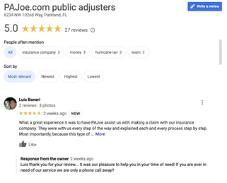PA Joe did an amazing job getting us the money owed and deserved from our insurance carrier. He worked tirelessly more hours then I feel he was paid for. I was so pleasantly surprised when we actually received our monies. Great job and I would definitely use Joe again.